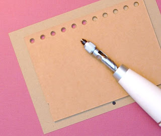 Since I decided to cover the entire chipboard and therefore, covered up the binding holes, I used my Martha Stewart Screw Punch to punch out the holes. The screw punch is the perfect tool for this sort of job since other punches sometimes do not have the reach that is needed.I finished off the front cover by adding a Journaling Sprout and popping it out to give it a bit of added dimension.
