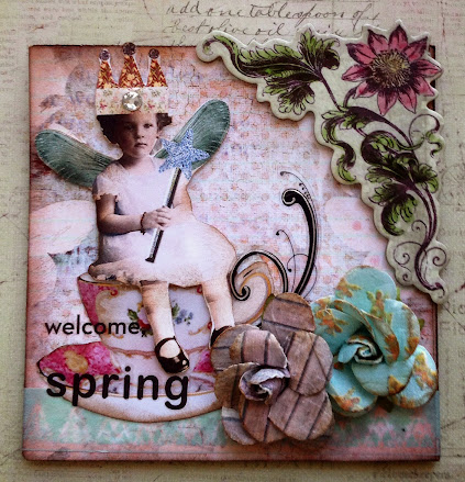So, even though the calendar says it is spring, looking out in my backyard, it is not. Thankfully, today the sun is shining. Translating all this longing for spring into creative action, I hosted a Spring Fling swap at In My Vintage Room, and here are my thoughts on spring as made into several mixed media little fat book pages.